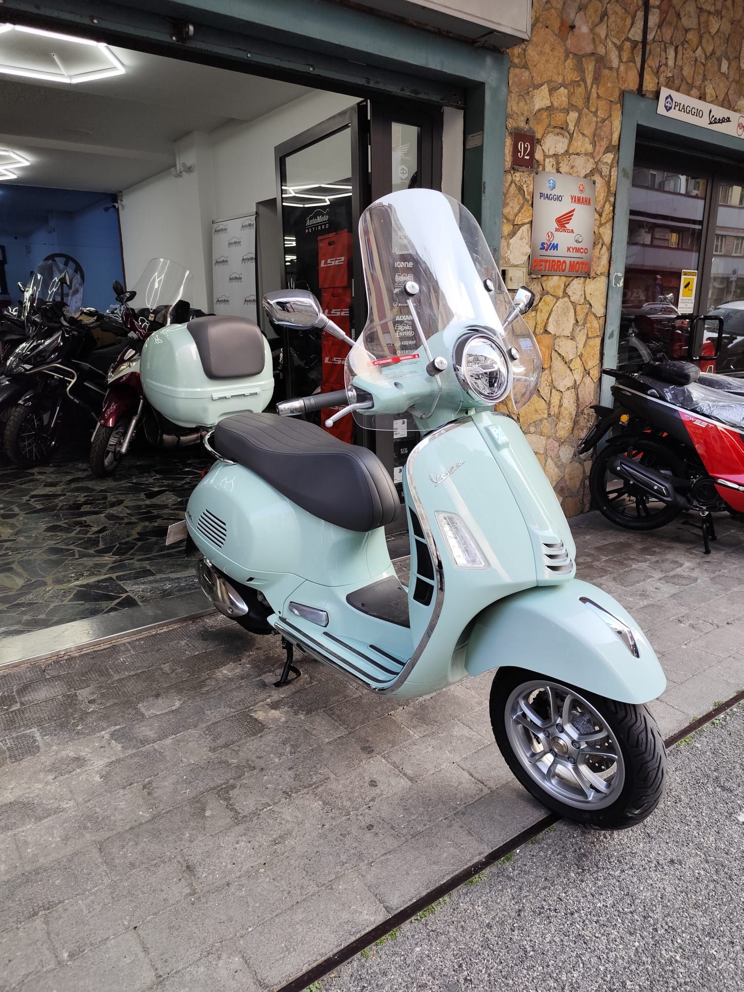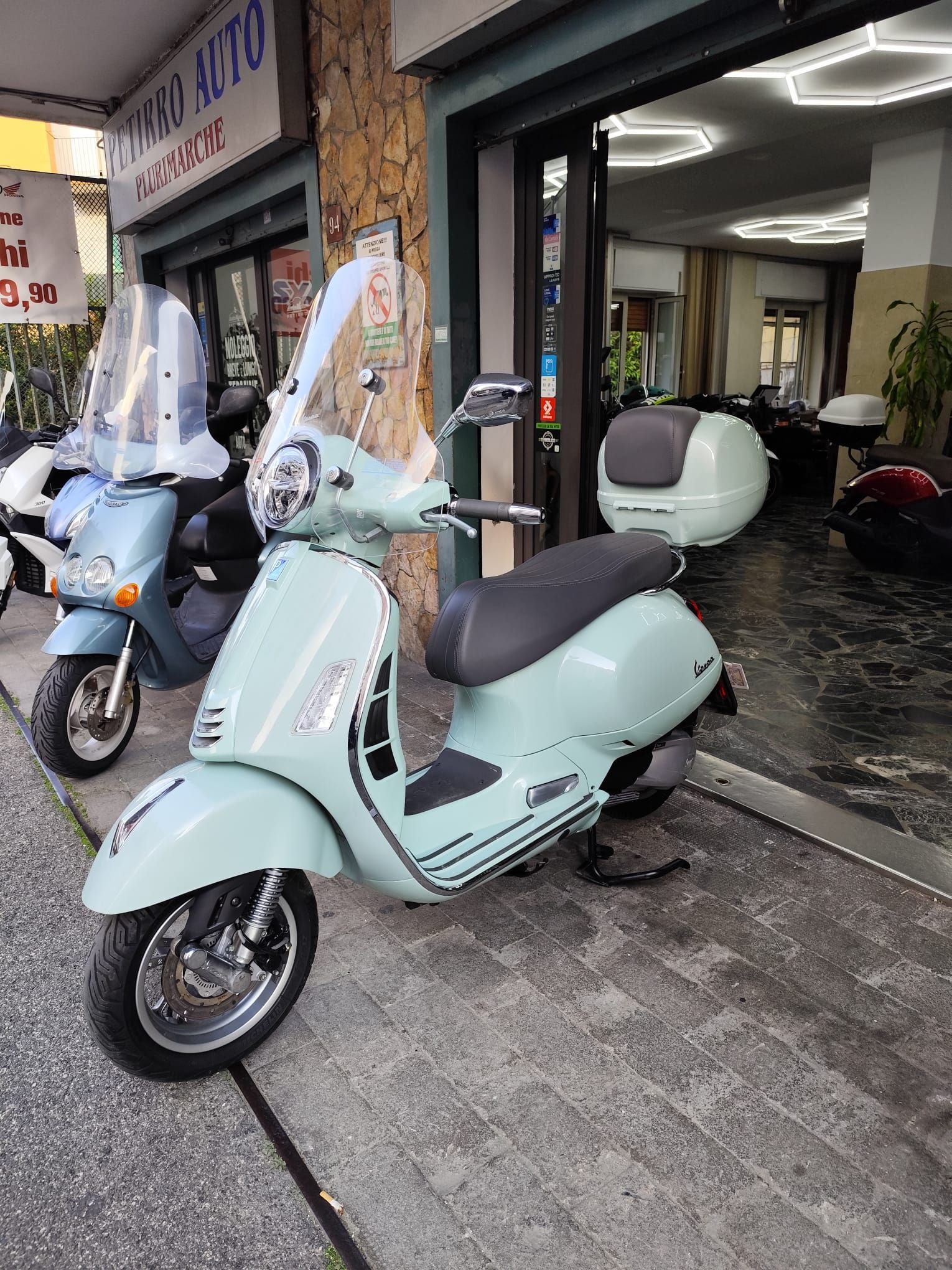 Tra le promozioni a disposizione c'è la possibilità di ottenere il tasso zero per un finanziamento a 24 mesi oppure dell'omaggio dell'assicurazione furto incendio su tutta la gamma Piaggio in riferimento alla vendita di moto e scooter.